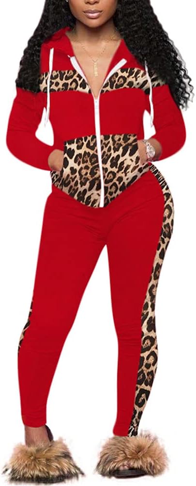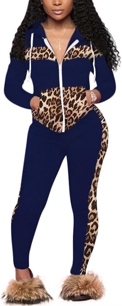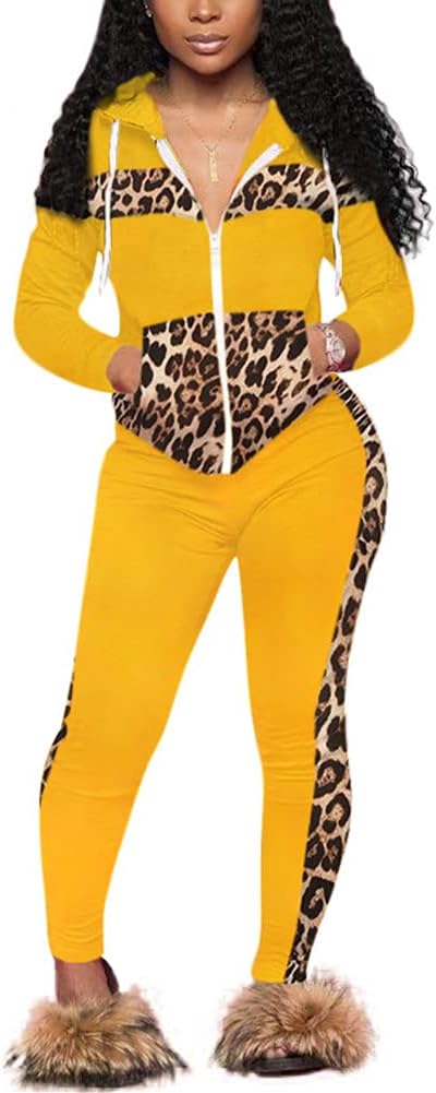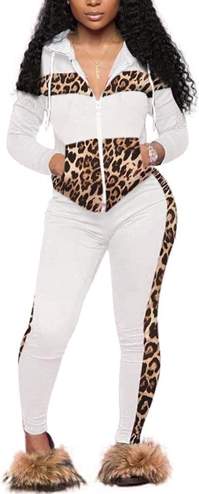 CCIGO Women's 2 Piece Outfits Sweatsuits Zip-up Hoodie Casual leopard Print Patchwork Jogger Tracksuit Set with PocketsSuper soft material: 95%Polyester+5%Spandex. Good elasticity,allowing you to stretch your body during exercise. Thick Fabric: Do not see through Trending Ruffled Outfits Set: Crop top with long sleeve nicely matched with the stylish club style pants Perfect for exerise in the gym, cross traning,workouts,running,walking,fitness,yoga,even wear this seamless outfits to shopping with friend.