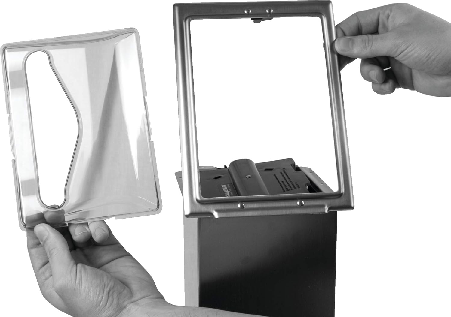 In-Counter Napkin Dispensers offer a unique, space saving storage design. The large capacity, stainless steel storage box is hidden under countertops for a neat professional appearance. Model for interfold napkins. Clear/satin stainless color.