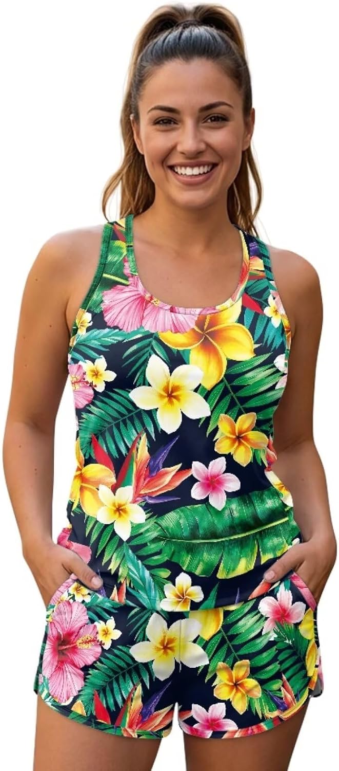 WHUVUMFY Tankini Swimsuits for Women Quick Drying Two Piece Bathing Suits with Pockets Swim Shorts Tankini Bathing Suits for Women: Tankini top with boyshorts, this tankini set is easy and comfortable to wear Swimsuits for Women 2 Piece Tankini: Blouson bathing suit top with loose fit design can hide your tummy. built in bra and shoulder straps provide good support Boy Shorts Swimsuits for Women: High waisted swim shorts provide good tummy control. a slight slit-leg design on boyleg is cute and flattering. this athletic swimming suit is suitable for volleyball sport, swimming, camping, beach, running and other activities Size Chart (Inch) S- Length:22", Bust:34.5", Waist:28", Hips:37.8" M- Length:22.7", Bust:36.3", Waist:29.7", Hips:38.7" L- Length:23.3", Bust:38", Waist:31.5", Hips:40.5" XL- Length:23.9", Bust:40", Waist:33", Hips:42" 2XL- Length:24.5", Bust:41.6", Waist:35", Hips:44" 3XL- Length:25.2", Bust:45", Waist:39.4", Hips:46.7" 4XL- Length:25.8", Bust:46.5", Waist:41.8", Hips:48.7" 5XL- Length:26.4", Bust:48", Waist:44.2", Hips:50.7" 6XL- Length:27", Bust:50", Waist:46.7", Hips:52.3"